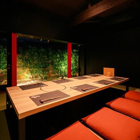【2층】최대 8분까지 이용 가능한 파고타츠 개인실에서 느긋하게.창 밖에 펼쳐지는 대나무의 초록이, 도시에 있으면서 치유의 시간을 연출합니다.